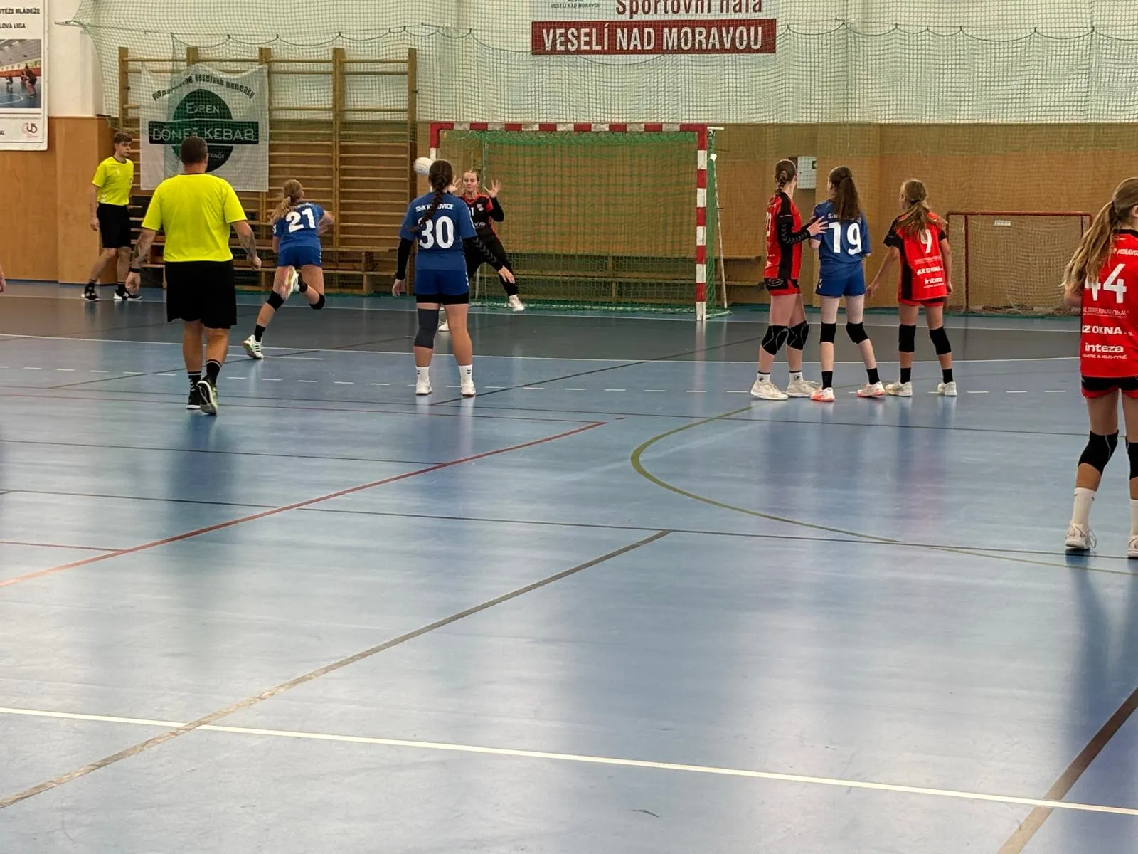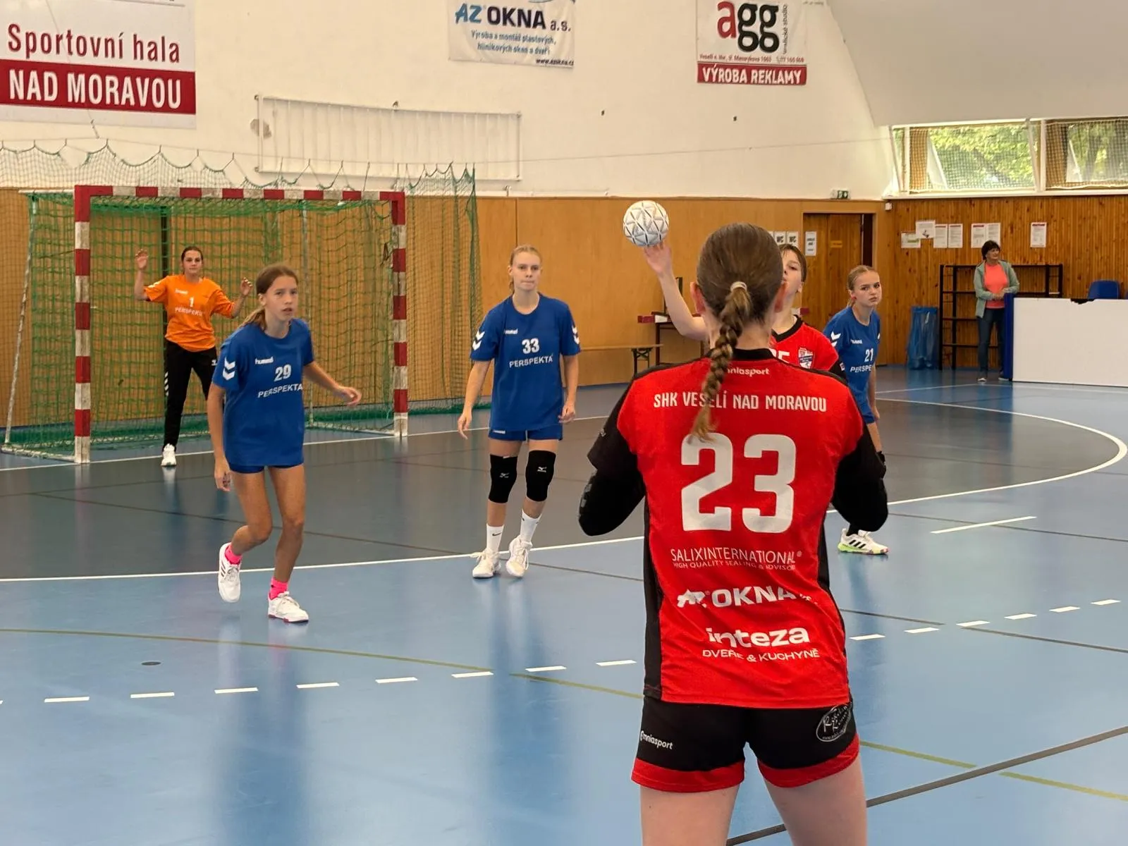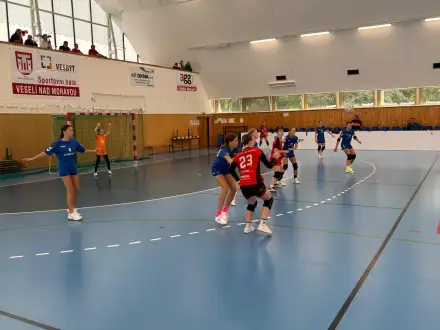V prvním kole sezony 2025/2026 starší žačky podlehly Veselí nad Moravou 34:19.